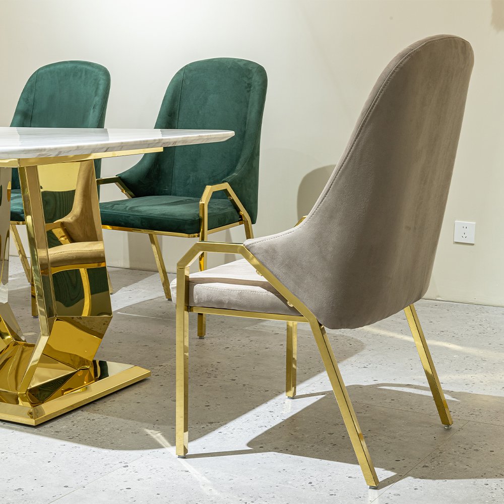 This light luxury dining chair has elegant lines and superior materials. The exquisite combination of metal and leather, shine and texture dance together, enjoy the honor at the table, add a touch of luxury to the dining time.