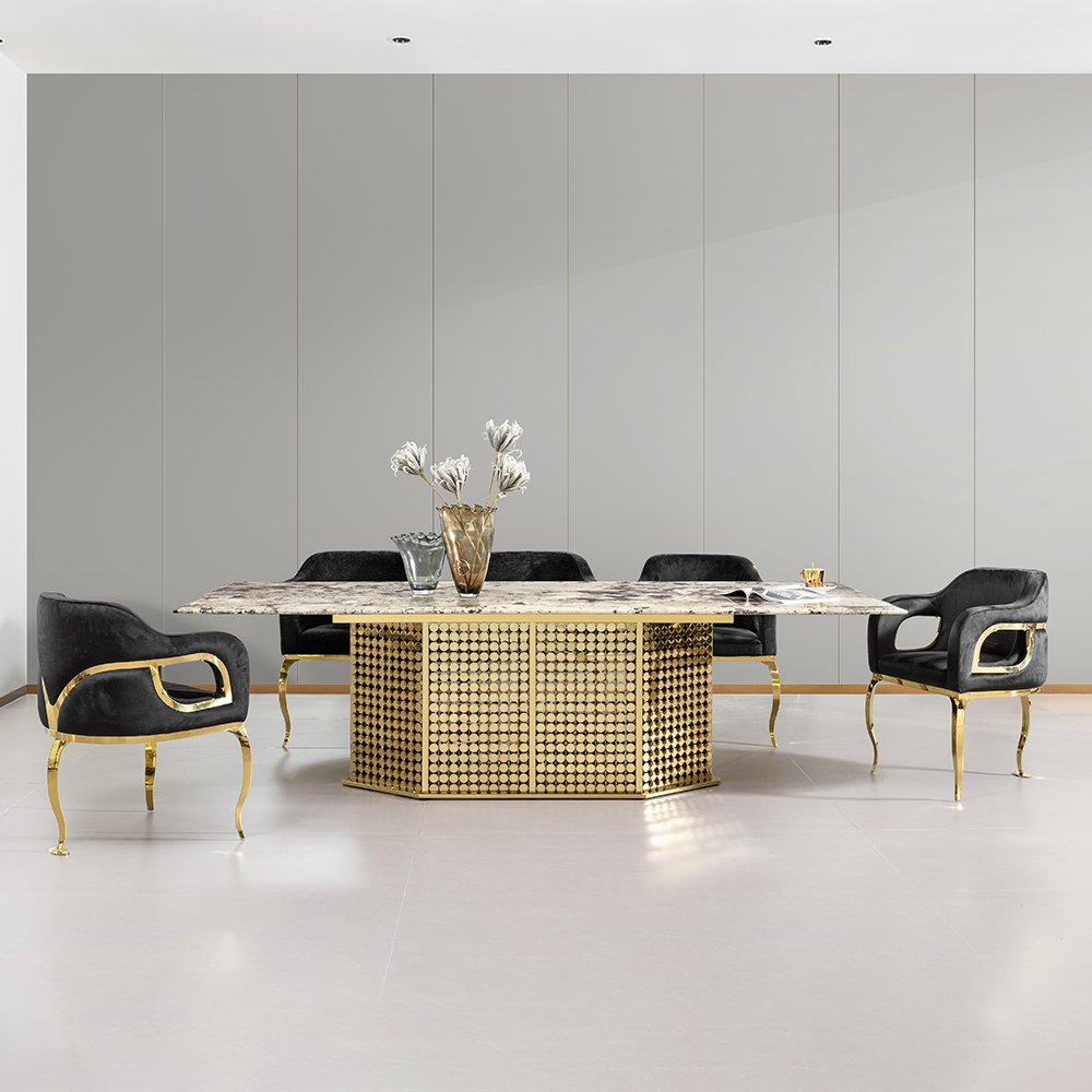 Velvet Commercial Restaurant Chair – Elevate your dining establishment with our exquisite velvet seats complemented by stunning gold stainless steel metal frame. This elegant combination delivers both visual appeal and commercial durability.